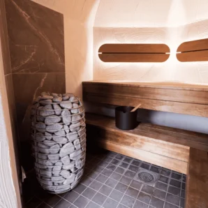 Sisemuses ootab valgusküllane võlvlagi, naturaalne puit ja modernne saunalava. HUUMi keris annab pehme, puhta ja pika leili – täpselt sellise, nagu hea eestimaine saun väärib.